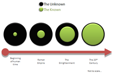 This implies that mankind should have hope that one day we will vanquish the unknown, and from there we derive the creed of the atheist Faith: God will no longer have a place to hide from the cleansing light of rational analysis.