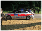 Five minutes into my ride with the young kids, this fake police car crested the hill and came into sight.